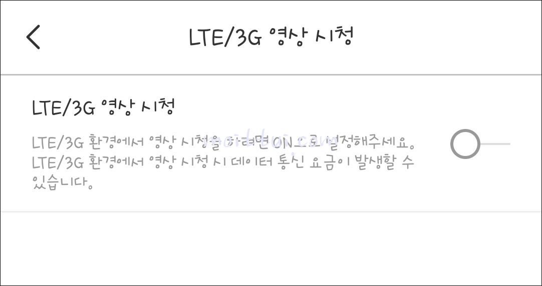 위와 같은 화면이 나옵니다. LTE/3G 영상 시청 문구와 함께 오른쪽에 동그라미 모양의 버튼이 있는데 클릭해서 활성화를 시켜주면 됩니다.