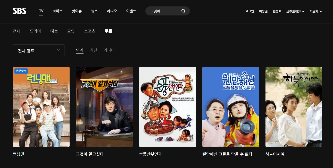 SBS 온에어 무료 실시간 방송 보는 방법