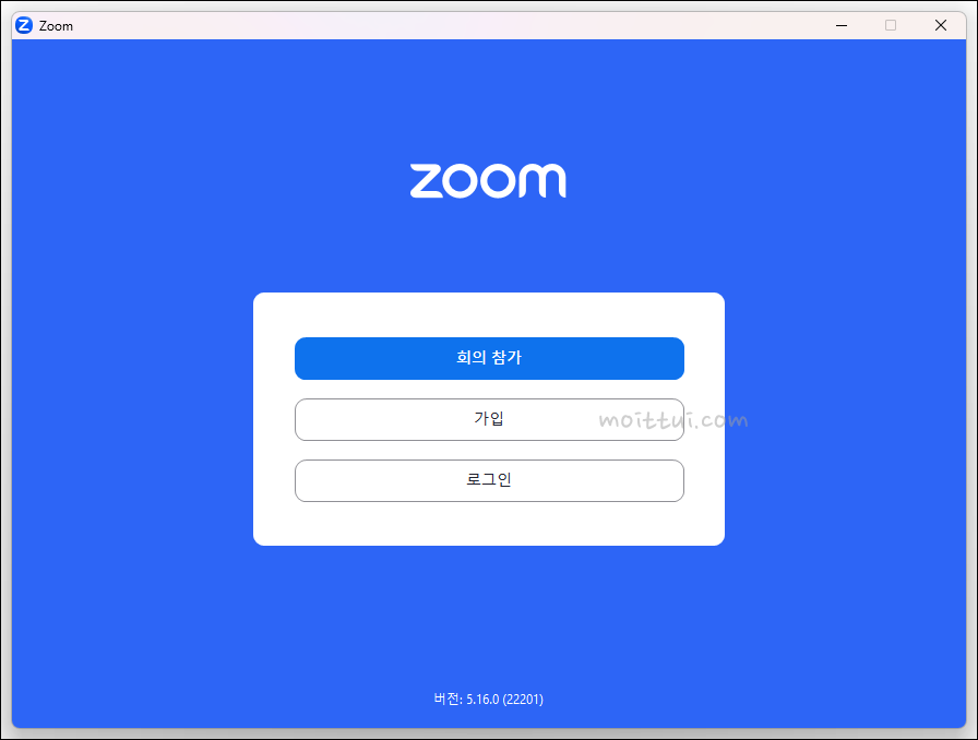 설치가 완료되고 완료버튼을 클릭하면 줌 ZOOM 접속 메인 화면이 보입니다. 화상회의가 있어서 줌을 다운로드 및 설치 했다면 회의 참가 버튼을 클릭 해줍니다.