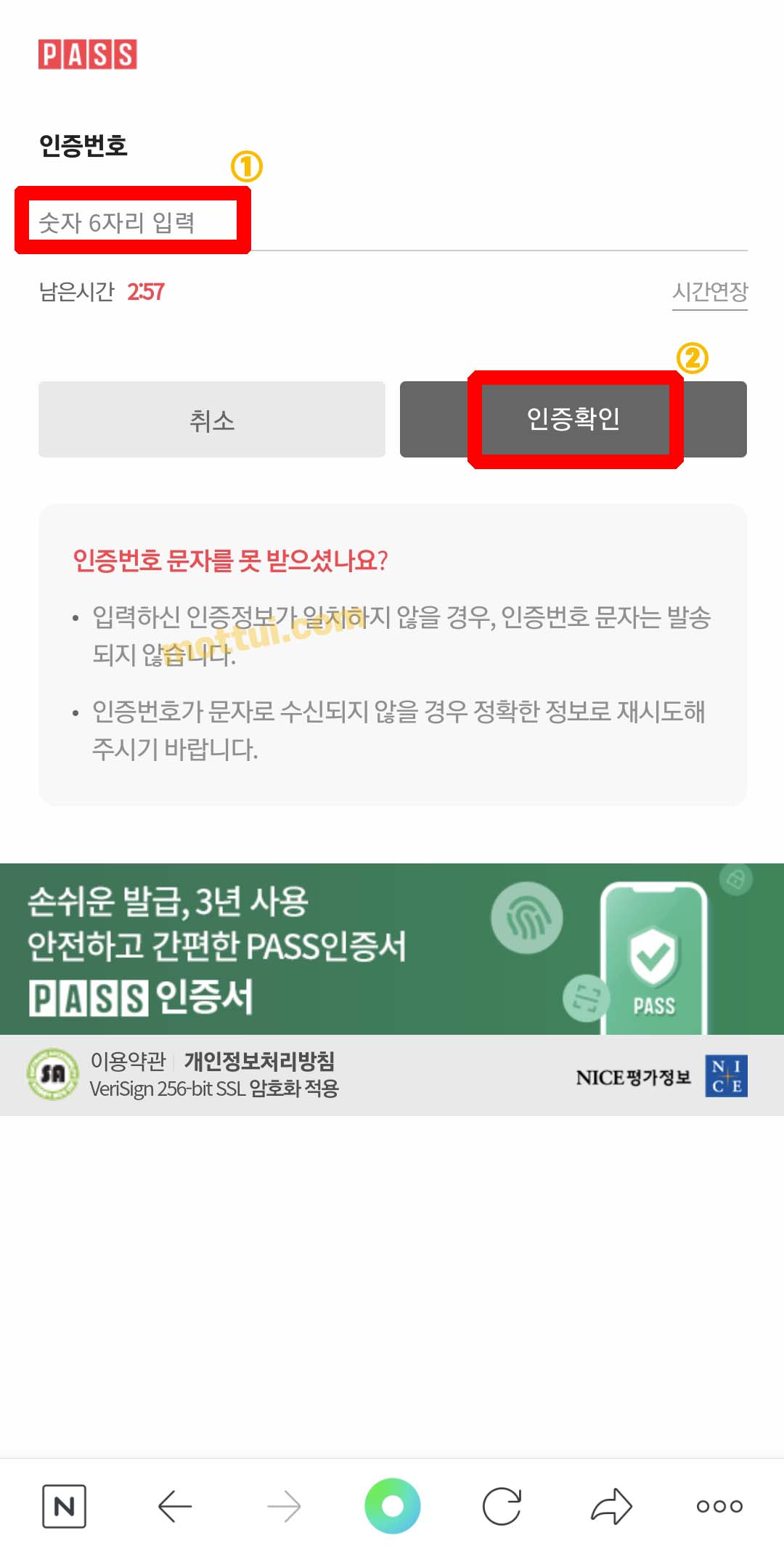 당연히 PASS 가입되어 있다면 PASS로 인증하기로 진행하셔도 됩니다.