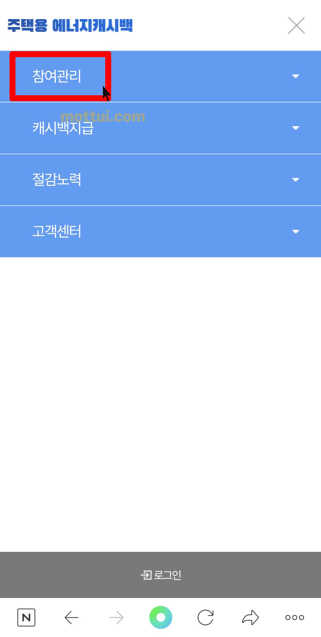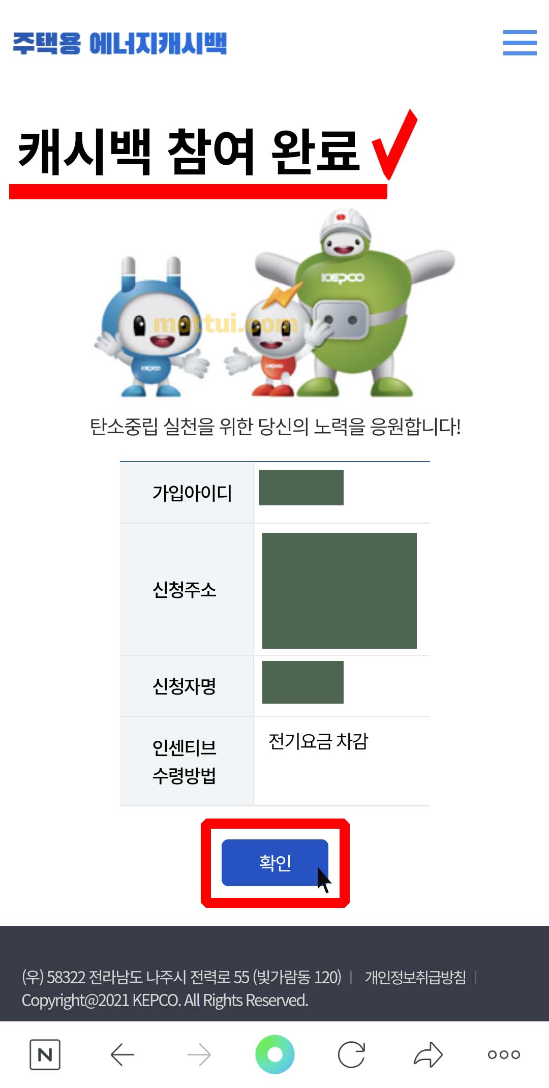 모두 체크하셨으면 하단에 있는 에너지캐시백 참여 확인 버튼을 클릭해 주세요.