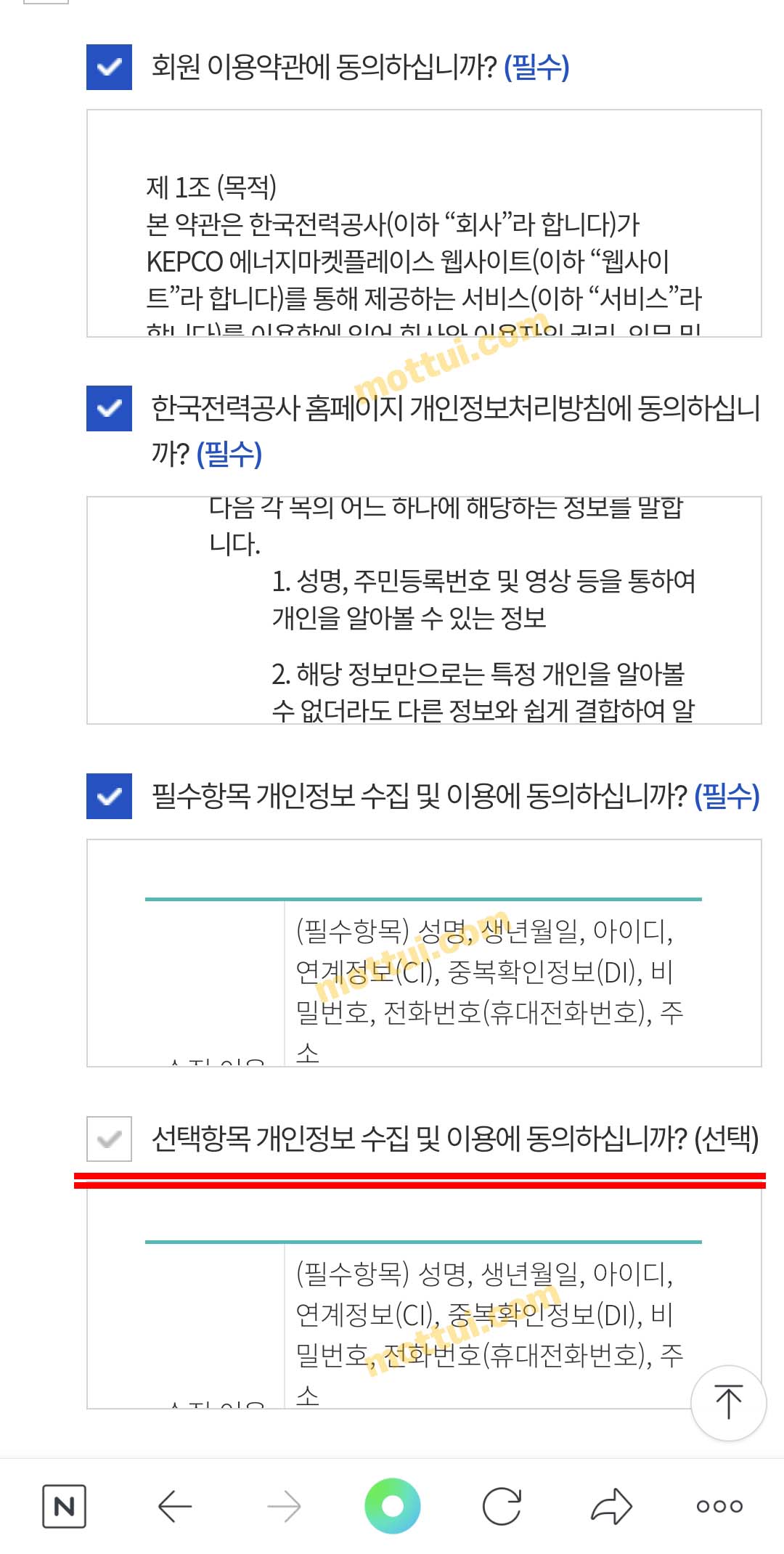 동의 체크 하기 전에 약관내용을 한번 훑어보시기 바랍니다.