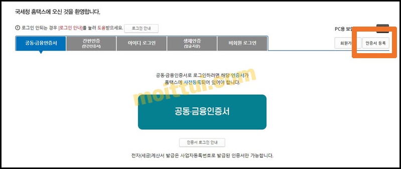 홈택스 인증서 등록
