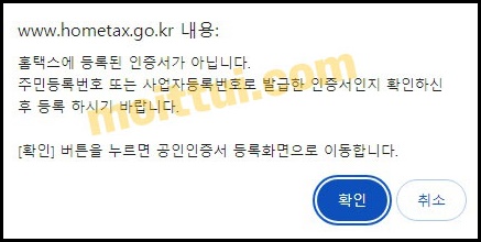 홈택스 로그인하려는데 '홈택스에 등록된 인증서가 아닙니다'라는 팝업 문구 때문에 당황한 적이 있으신가요?