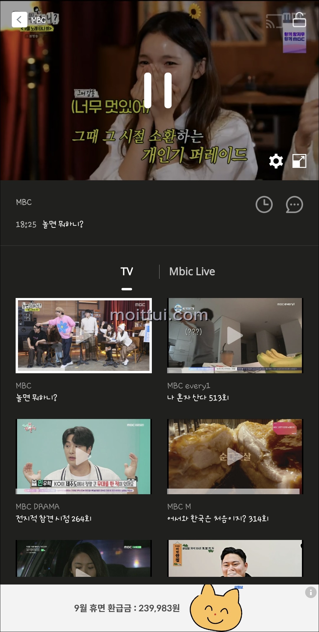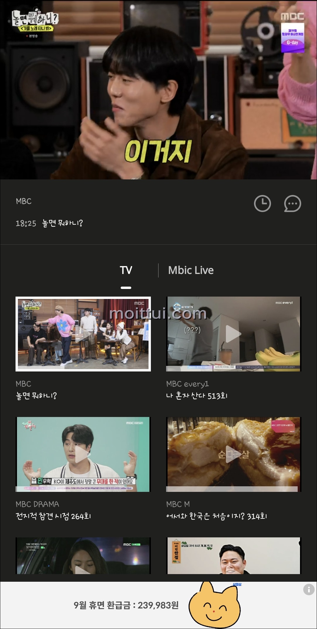 이렇게 MBC 모바일 앱을 설치 후 이용하게 되면 로그인없이 MBC 온에어 실시간 TV를 무료로 볼 수 있습니다. 또한 앱에서는 실시간 TV 뿐만 아니라 더 다양한 프로그램을 볼 수 있습니다.