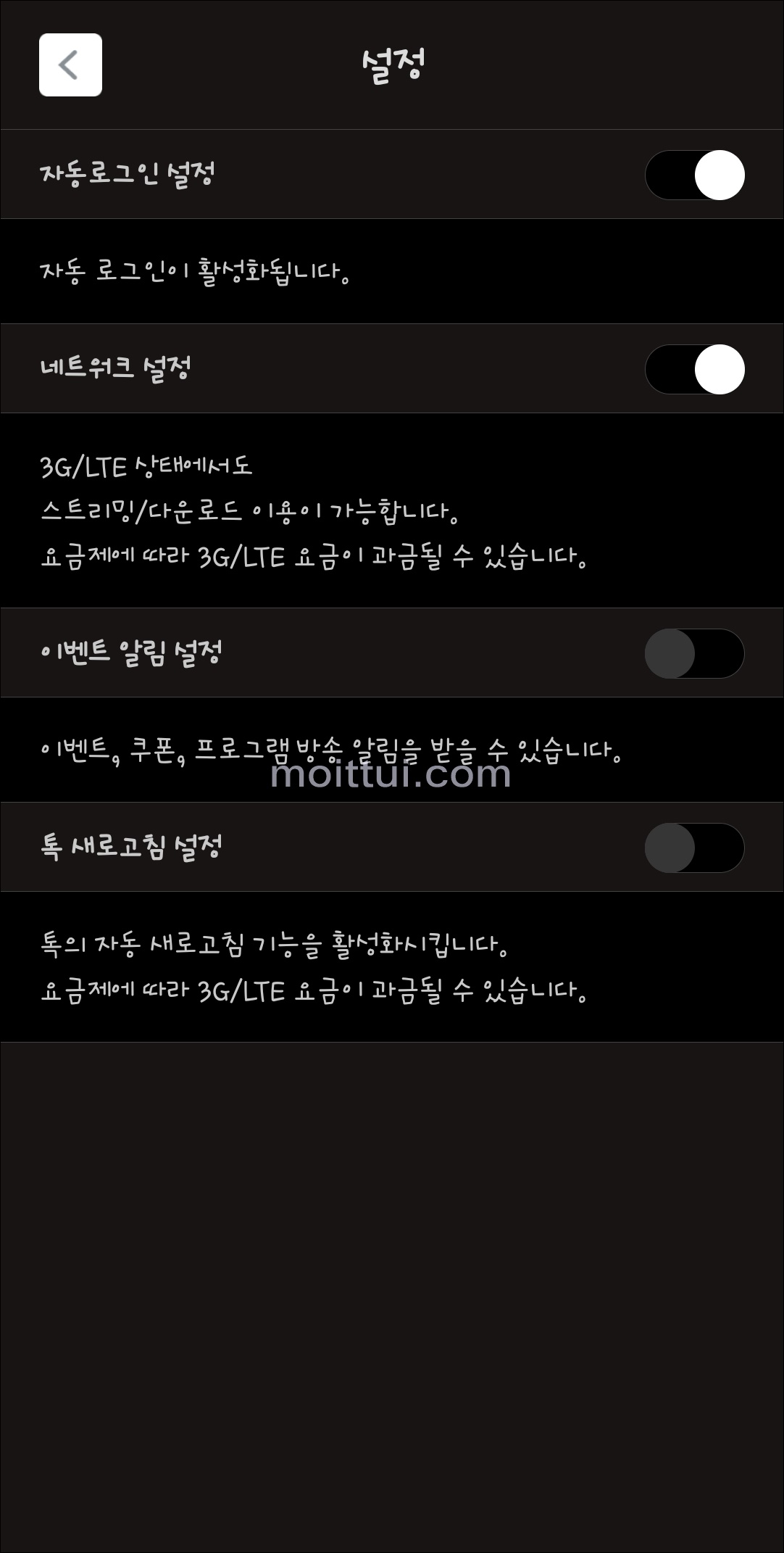 설정을 한다는 것은 로그인을 해서 마이페이지에서 해야 하는게 아닌가 하는 생각을 할 수 있는데 그 어떤것도 필요 없습니다. 설정창으로 이동이 되면 네트워크 설정 옆에 버튼을 클릭해서 활성화만 시켜주면 됩니다.